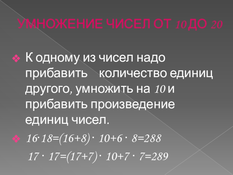 Слайд 9УМНОЖЕНИЕ ЧИСЕЛ ОТ 10 ДО 20