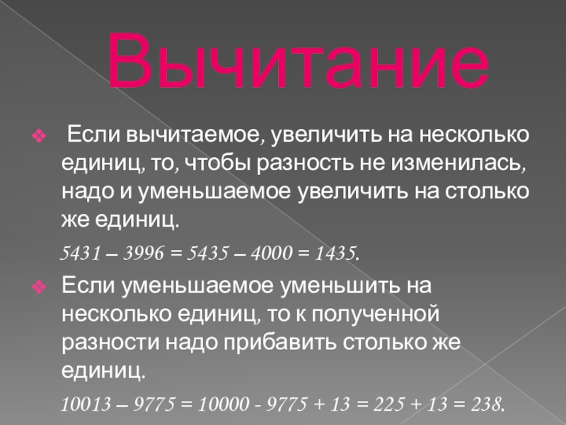 Если вычитаемое, увеличить на несколько единиц, то, чтобы разность не изменилась,
