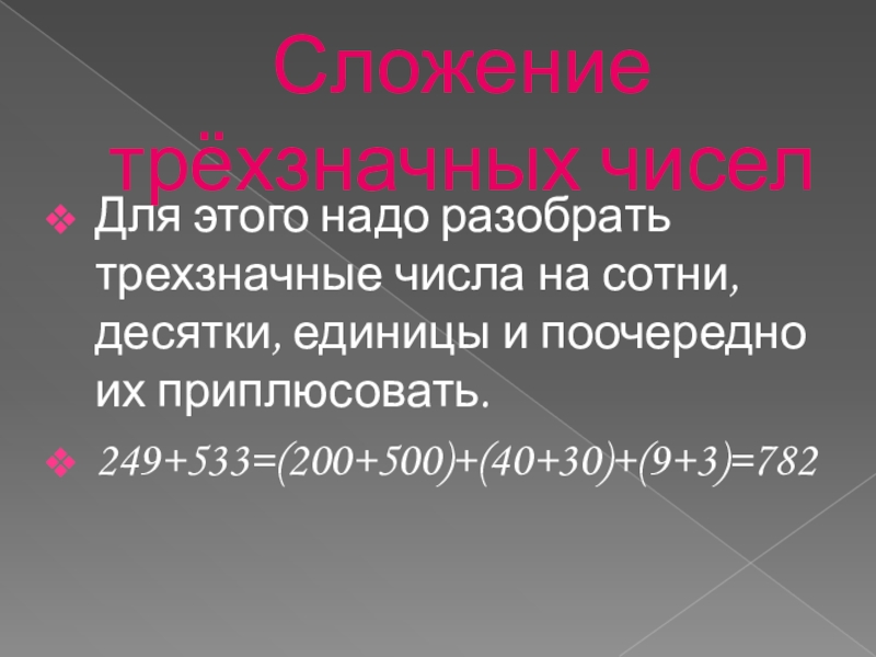 Для этого надо разобрать трехзначные числа на сотни, десятки,