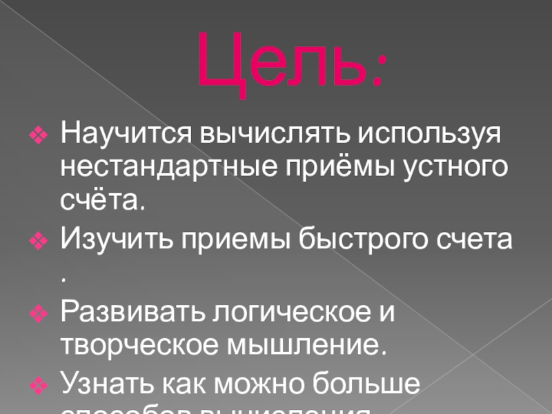 Научится вычислять используя нестандартные приёмы устного счёта.