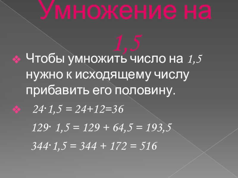 Чтобы умножить число на 1,5 нужно к исходящему числу