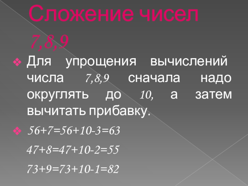Для упрощения вычислений числа 7,8,9 сначала надо округлять до