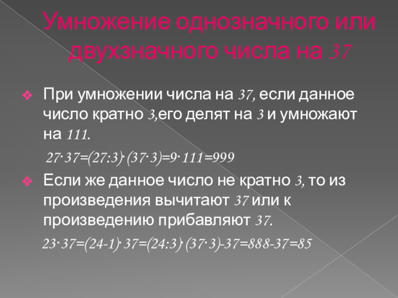 Слайд 10Умножение однозначного или двухзначного числа на 37