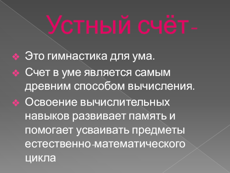 Освоение вычислительных навыков развивает память и помогает усваивать предметы естественно-математического цикла