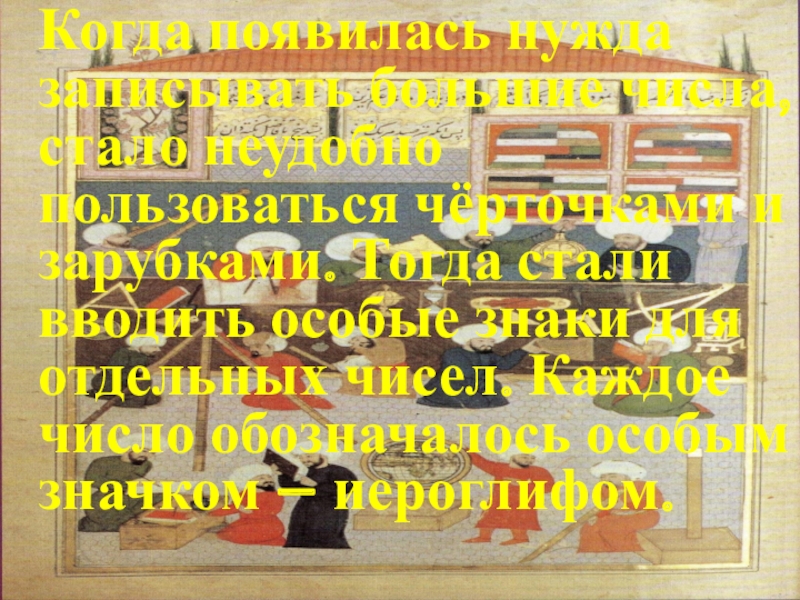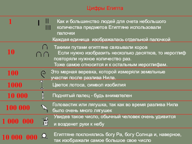 Если нужно изобразить несколько десятков, то иероглиф повторяли нужное количество раз.