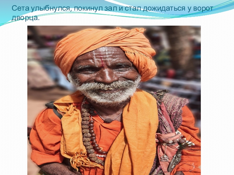 Слайд 8Сета улыбнулся, покинул зал и стал дожидаться у ворот дворца.