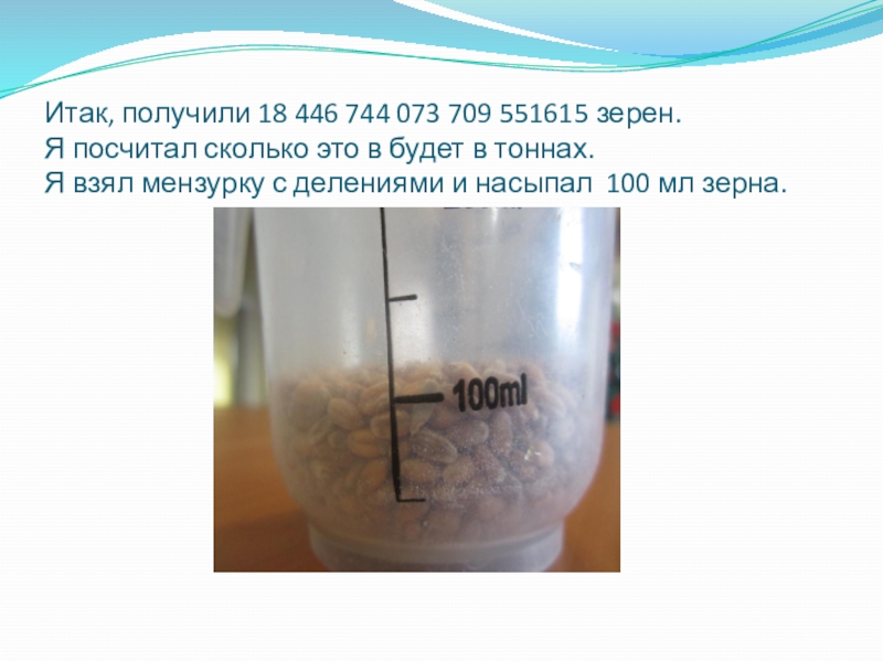 Слайд 16Итак, получили 18 446 744 073 709 551615 зерен.