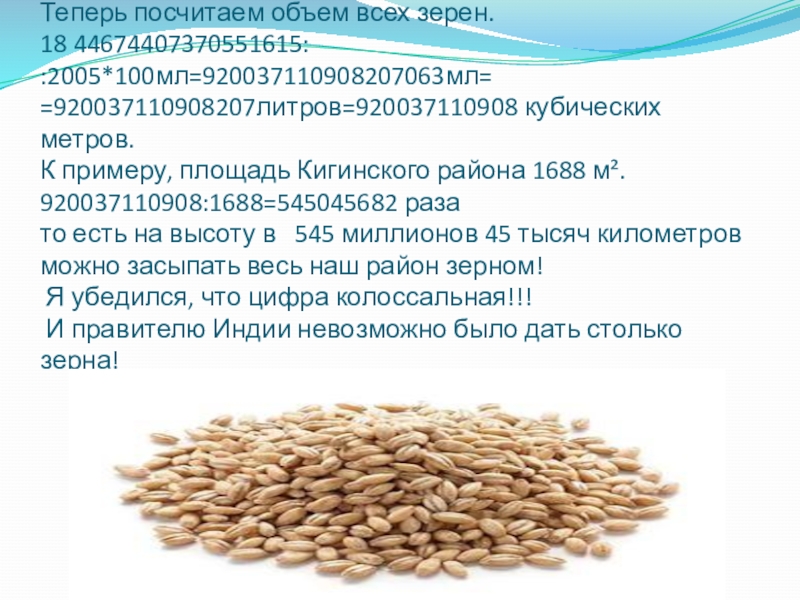 то есть на высоту в 545 миллионов 45 тысяч километров можно засыпать весь наш район зерном!