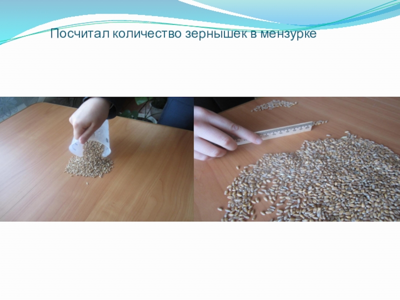 Слайд 15Целью моей исследовательской работы посчитать количество зерен математическими методами, узнать по