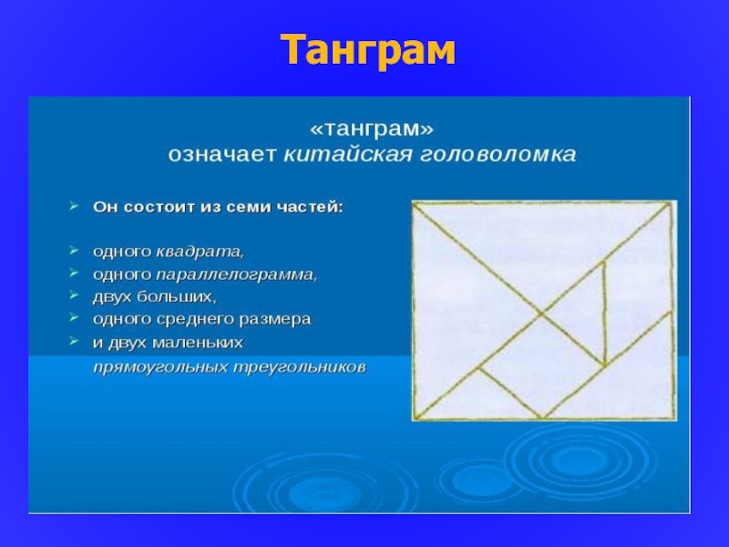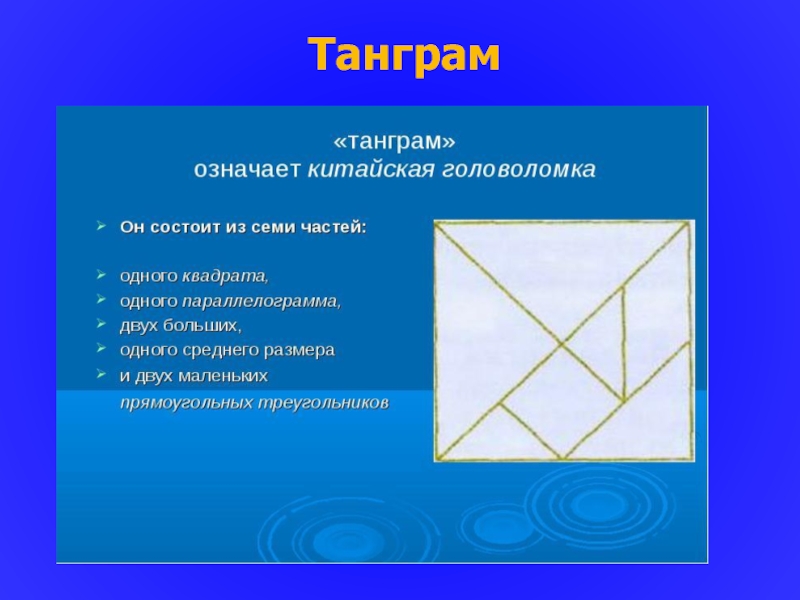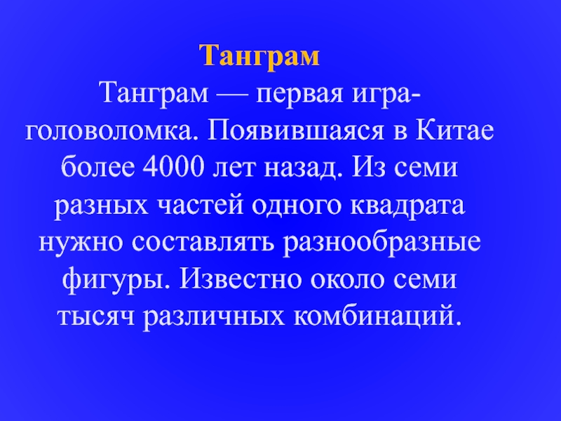 Слайд 11Танграм Танграм — первая игра-головоломка. Появившаяся в Китае более 4000 лет назад.