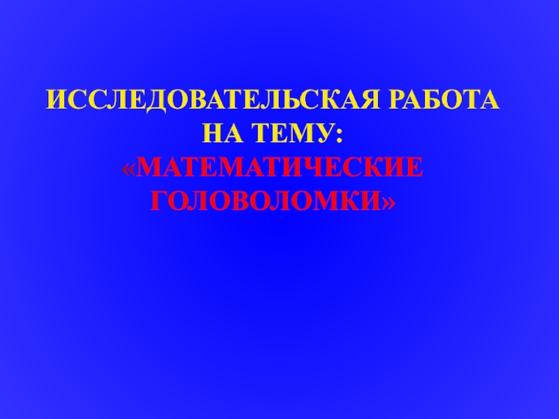 Слайд 2ИССЛЕДОВАТЕЛЬСКАЯ РАБОТА НА ТЕМУ: «МАТЕМАТИЧЕСКИЕ ГОЛОВОЛОМКИ»