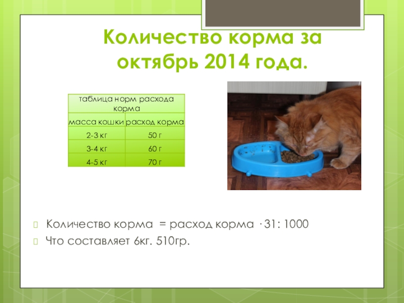 корма за октябрь: