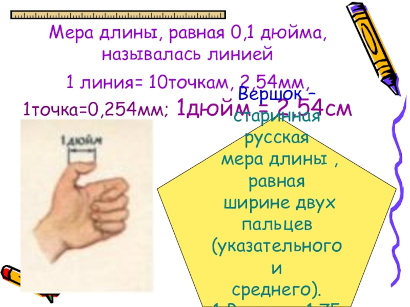 1 Вершок =1,75 дюйма