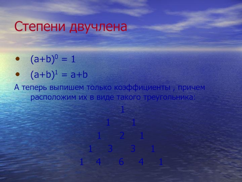 Слайд 6Степени двучлена