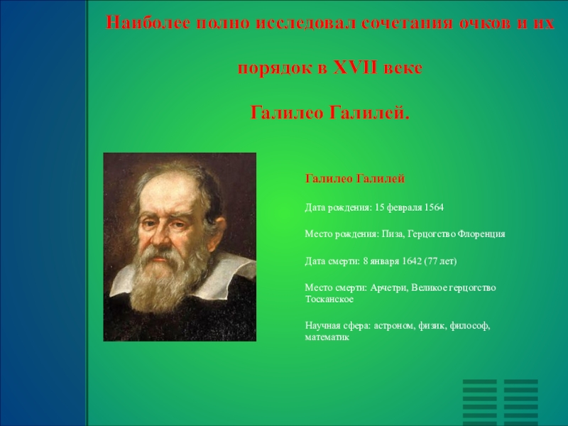 Слайд 16Наиболее полно исследовал сочетания очков и их