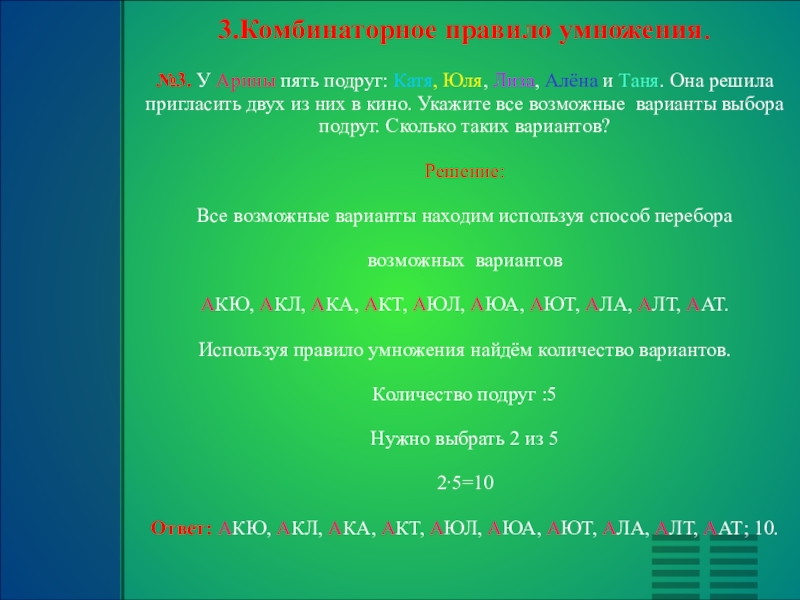 В ближайшем будущем мы научимся решать более сложные задачи комбинаторики, а