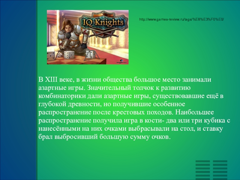 В XIII веке, в жизни общества большое место занимали азартные игры.
