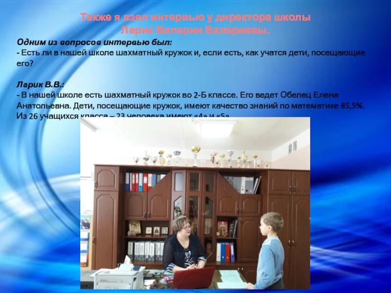 Слайд 32Я взял интервью у тренером шахматного кружка