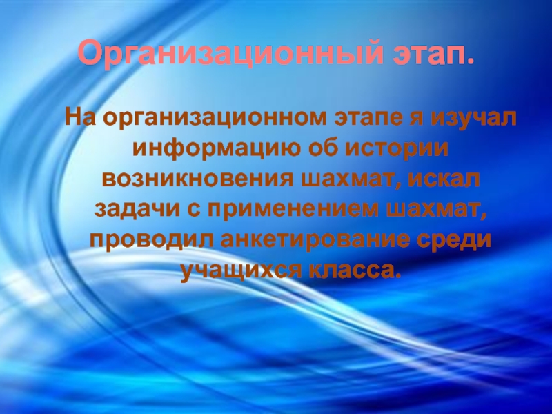 На организационном этапе я изучал информацию об истории возникновения шахмат,