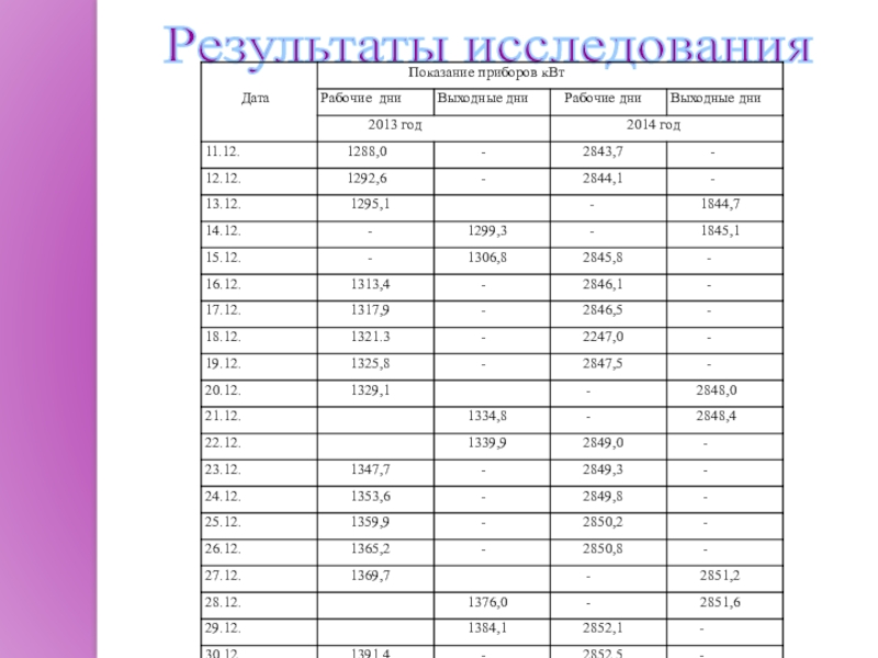 Средняя суточная норма потребления электроэнергии в выходные дни декабря 2014 года составляла7,3кВт