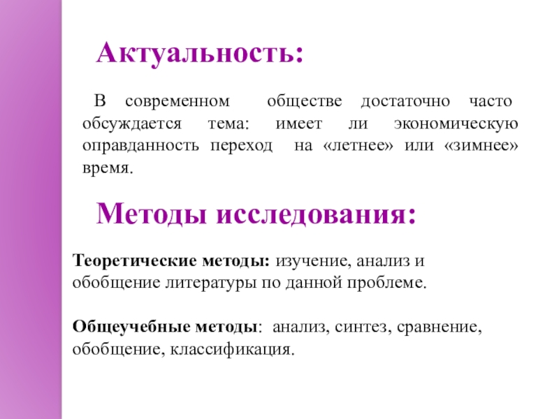 Теоретические методы: изучение, анализ и обобщение литературы по данной проблеме.