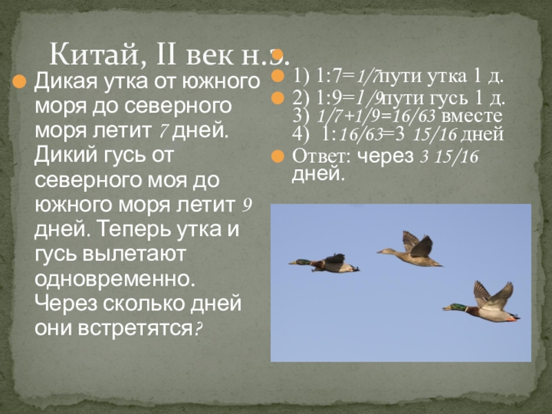 2) 1:9=1/9пути гусь 1 д. 3) 1/7+1/9=16/63 вместе