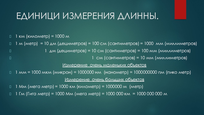 Единицы длинны могут быть разные : 1 мм, 1 см, 1 м и тд.