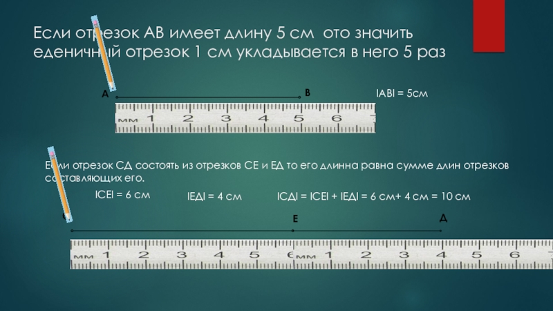 Если отрезок СД состоять из отрезков СЕ и ЕД то его длинна равна сумме длин отрезков составляющих его.