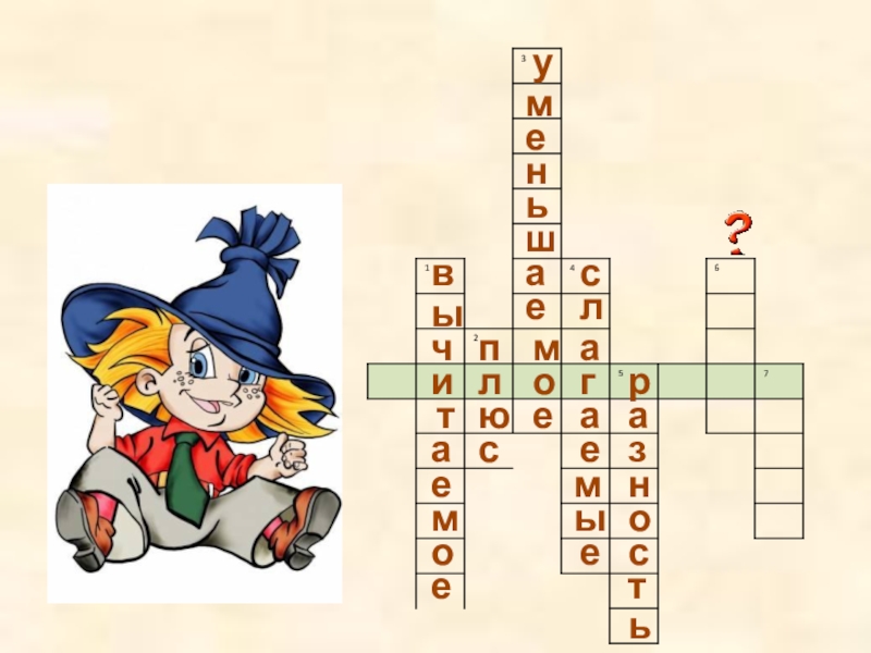 вычитаемеоплюсуменьшаемоеслагаемыеразнсоть
