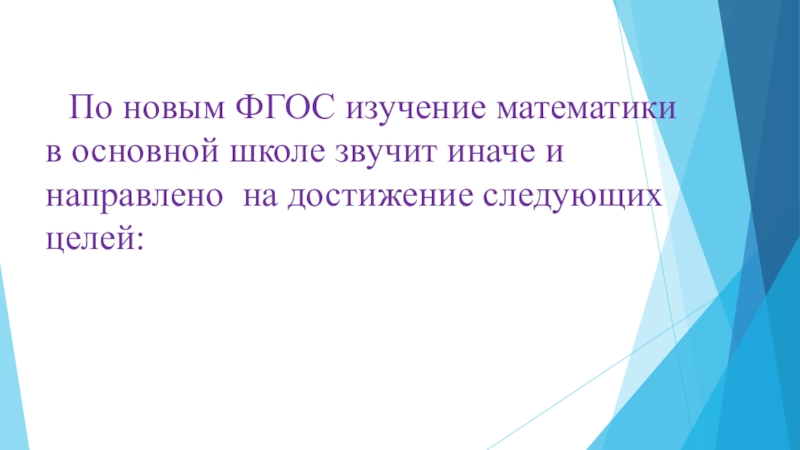 Слайд 7По новым ФГОС изучение математики в основной школе звучит иначе и