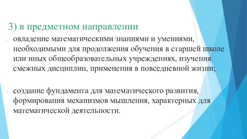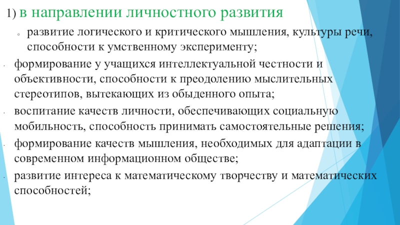 качеств мышления, свойственных математической деятельности и необходимых для получения общего образования, для полноценной жизни в современном обществе;