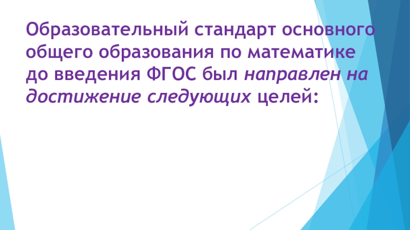 Слайд 2Образовательный стандарт основного общего образования по математике до введения ФГОС был