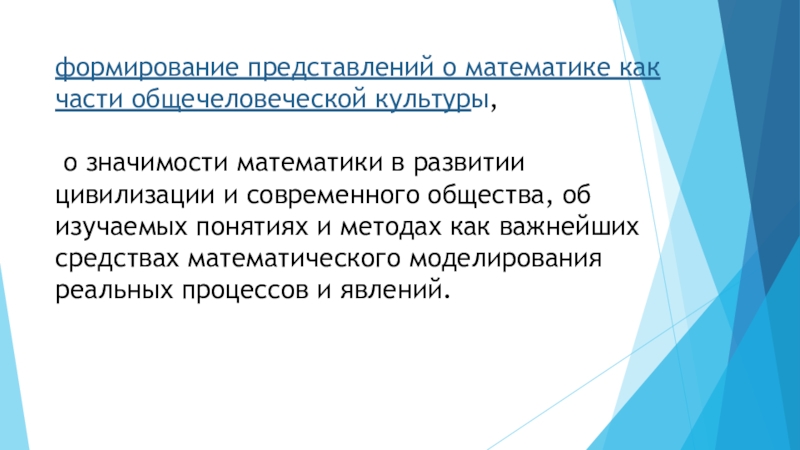Слайд 6формирование представлений о математике как части общечеловеческой культуры,