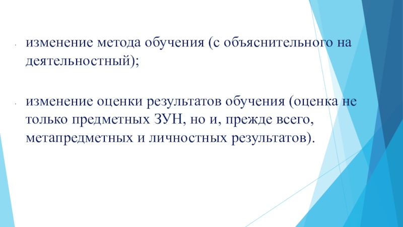Слайд 12изменение метода обучения (с объяснительного на деятельностный);