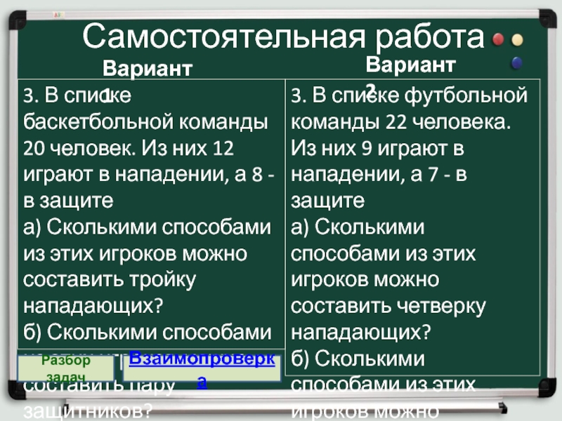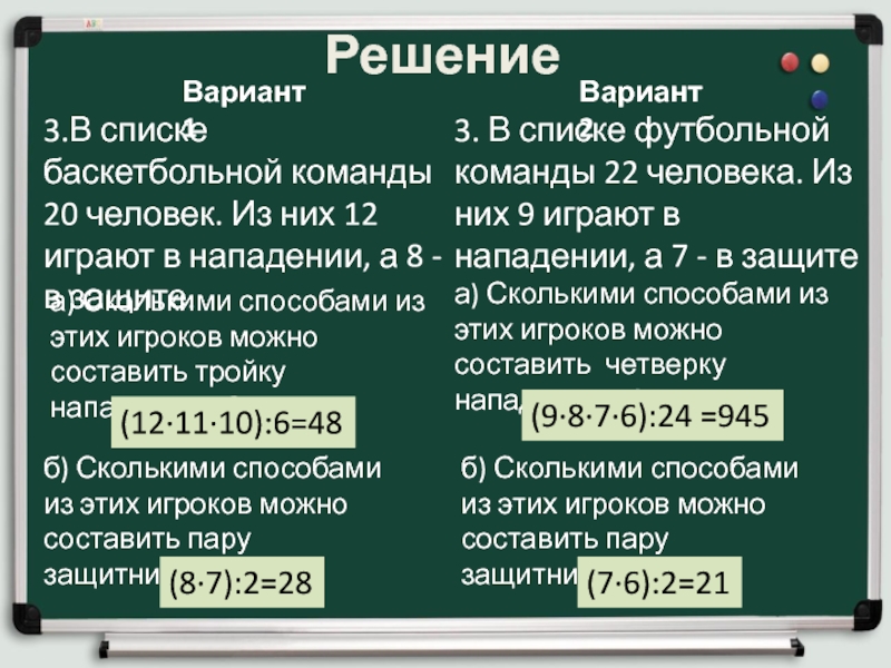 3. В списке футбольной команды 22 человека. Из них 9 играют в нападении, а 7 - в защите