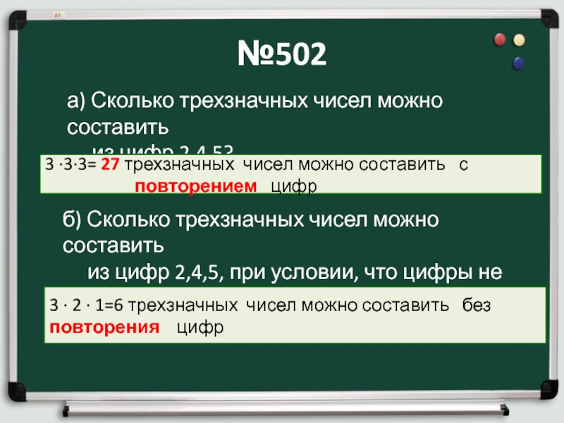 3 ∙ 2 ∙ 1=6 трехзначных чисел можно составить без повторения цифр