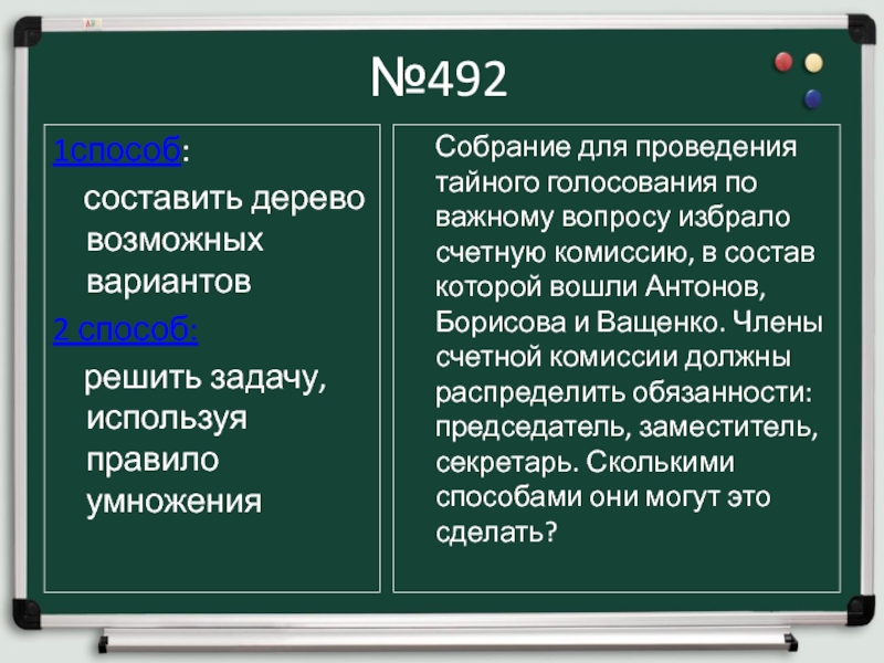 2)2∙1=2(способа)-расположения мальчиков по порядку в каждой паре
