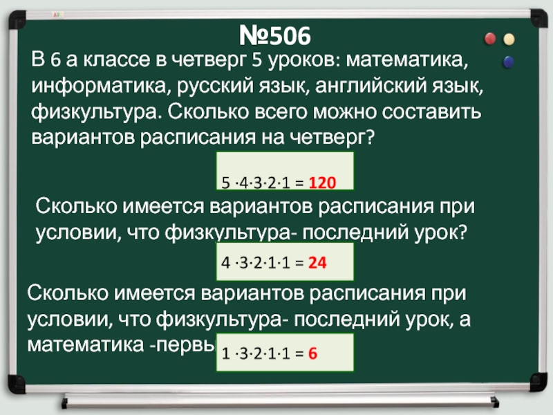 Сколько имеется вариантов расписания при условии, что физкультура- последний урок, а математика -первый?