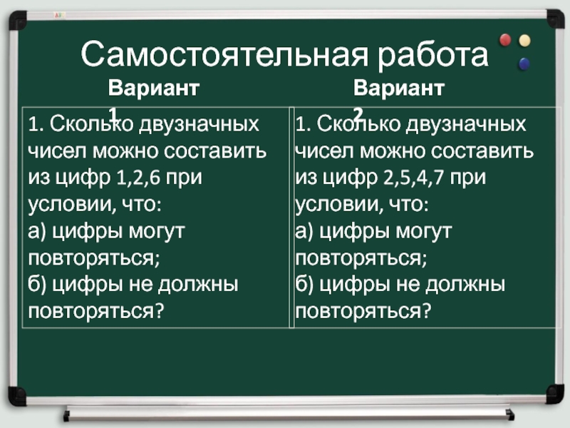 1. Сколько двузначных чисел можно составить из цифр 2,5,4,7 при условии, что: