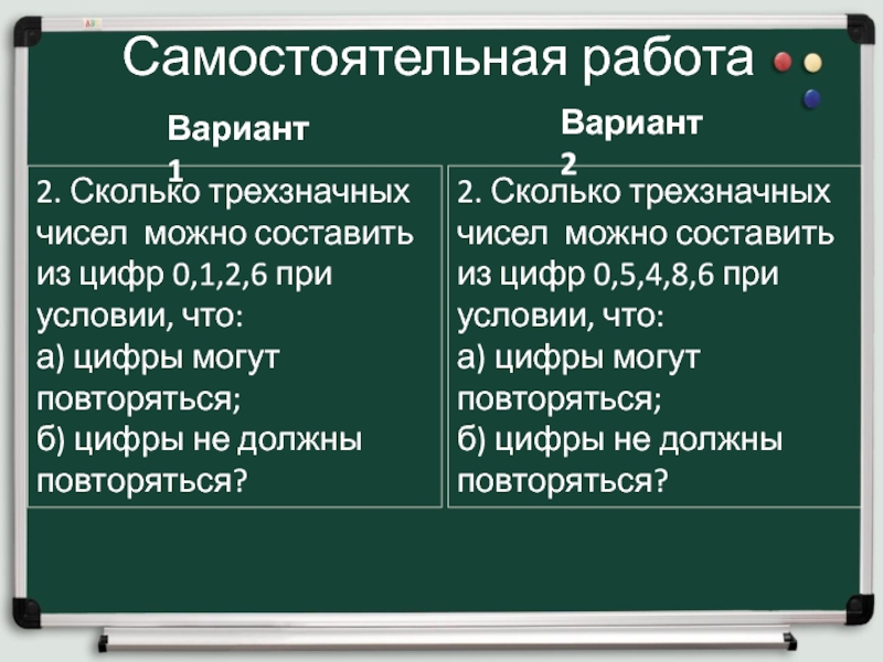 2. Сколько трехзначных чисел можно составить из цифр 0,5,4,8,6 при условии, что:
