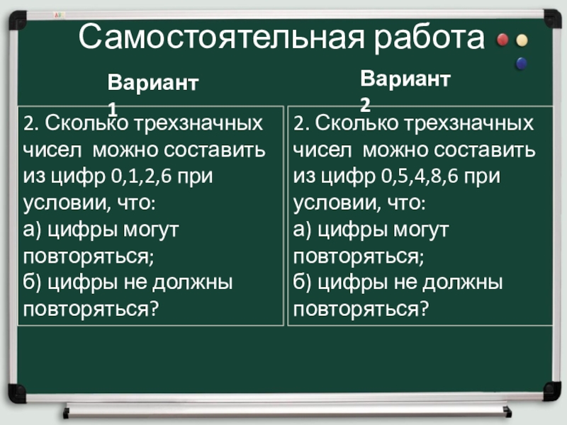 2. Сколько трехзначных чисел можно составить из цифр 0,5,4,8,6 при условии, что: