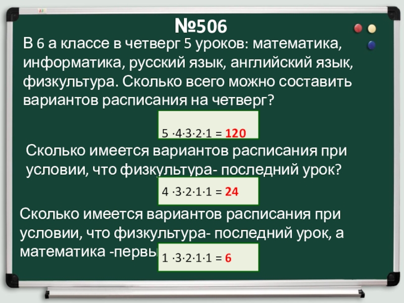 Сколько имеется вариантов расписания при условии, что физкультура- последний урок, а математика -первый?
