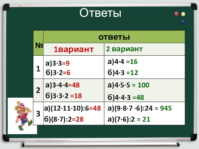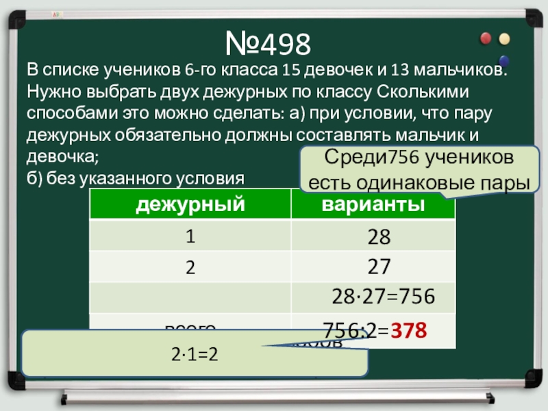 2)2∙1=2(способа)-расположения мальчиков по порядку в каждой паре