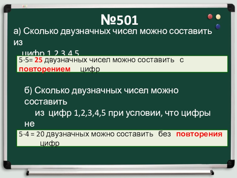 5∙4 = 20 двузначных можно составить без повторения цифр