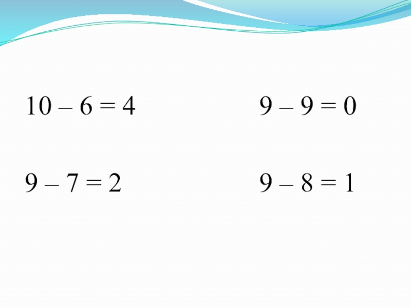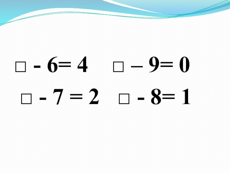 Слайд 9□ - 6= 4 □ – 9= 0