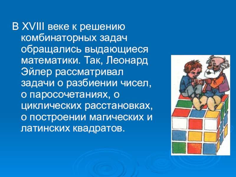 В XVIII веке к решению комбинаторных задач обращались выдающиеся математики. Так,