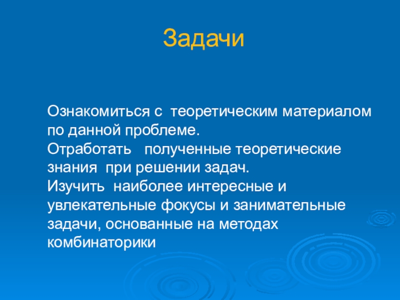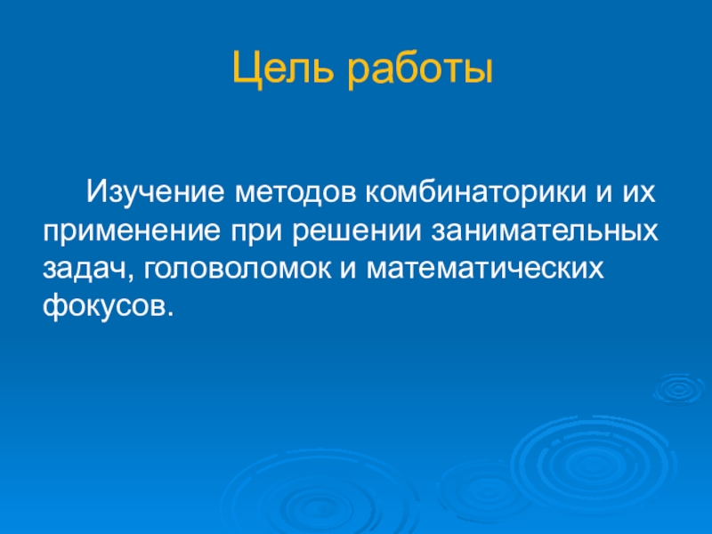 Изучить наиболее интересные и увлекательные фокусы и занимательные задачи, основанные на методах комбинаторики