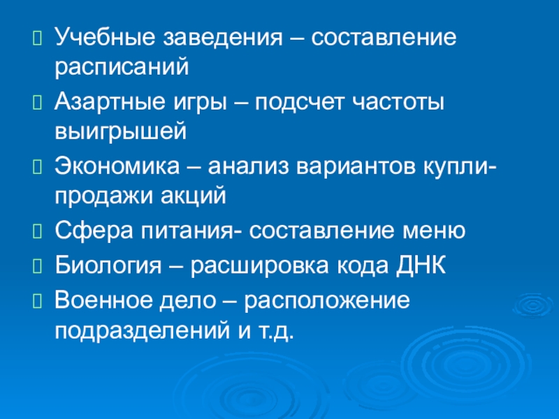 3. Комбинаторика - один из разделов математики, который имеет самое широкое практическое применение во всех отраслях производства и жизни человека.