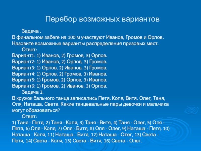 Вариант2: 1) Иванов, 2) Орлов, 3) Громов.