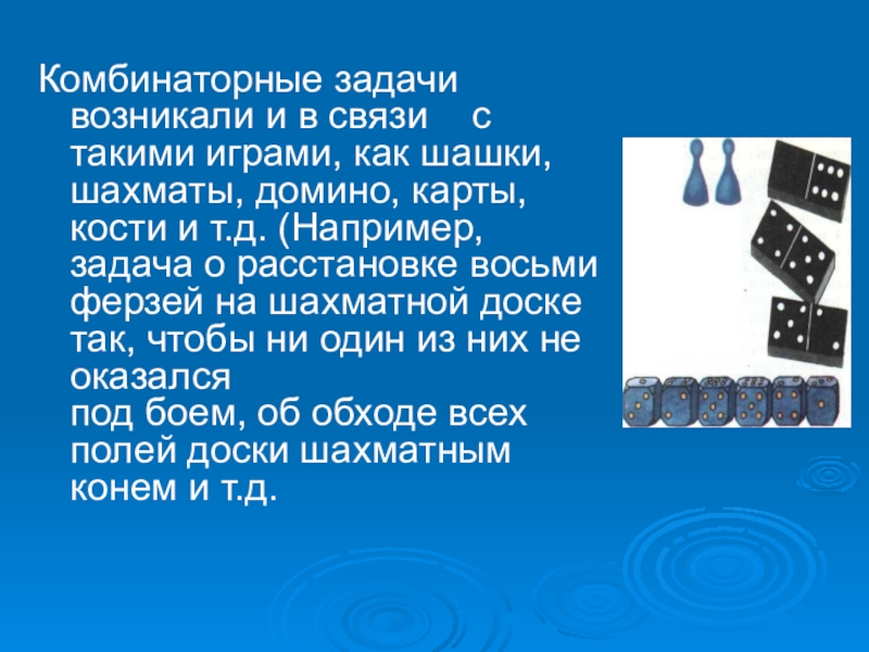 Комбинаторные задачи возникали и в связи с такими играми, как шашки, шахматы,